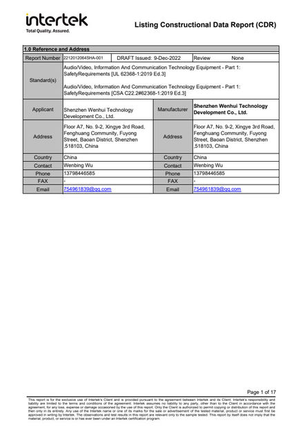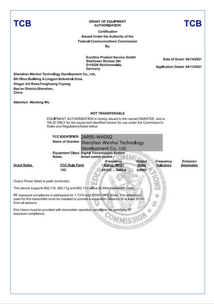 Shenzhen Wenhui Technology Development Co., Ltd. Certifications